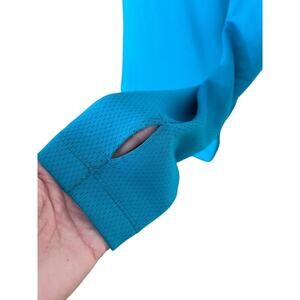 Under Armour women's size M fitted Cold Gear top. Teal color. Made of polyester and elastine. Thumb holes for added comfort and stryle.