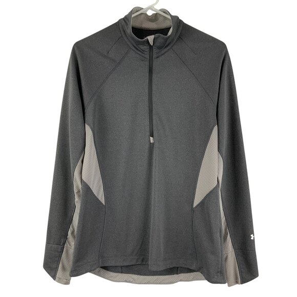 Under Armour Fitted Coldgear Gray 1/3 Zip Mock Neck Pullover Sweater Size LG