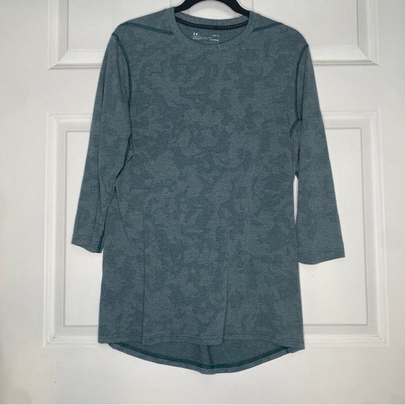 Under Armour Fitted Heather Green HeatGear 3/4 Sleeve Pullover Shirt Size Medium