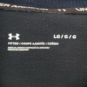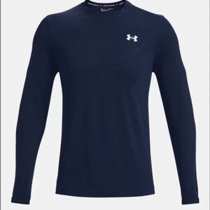 In excellent condition. No flaws. Seamless fitted under armour long sleeve shirt. Navy blue with white logo.