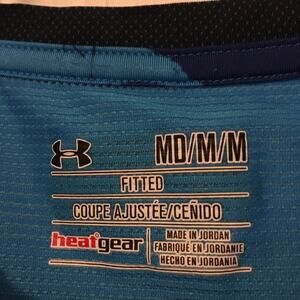 Under Armour, Fitted, Size M, Heat Gear Blue &. Black Short Sleeve Workout Top