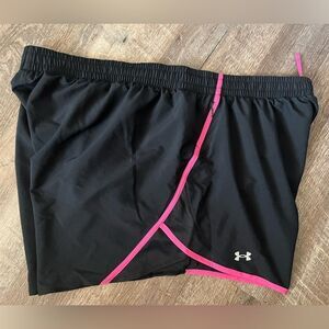 This listing is for a pair of Under Armour Fly By 2.0 Shorts in size 3X, in color black/pink.