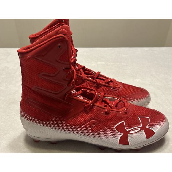 Under Armour Football Cleats Mens Size 11 Red White Highlight MC Lacrosse Lace