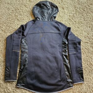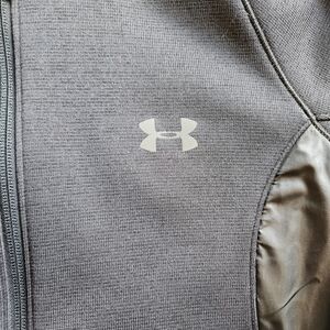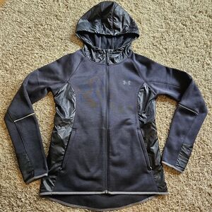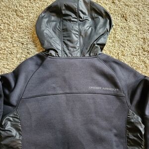Stylish black hooded jacket by Under Armour. Features sleek design with zip closure.