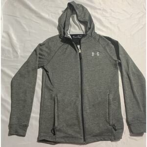 Under Armour Full Zip Fleece Hoodie Cold Gear Fitted Grey Mens Small
