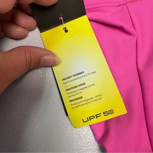Vibrant pink one-piece swimsuit with stylish straps. Perfect for swimming or lounging by the pool.
