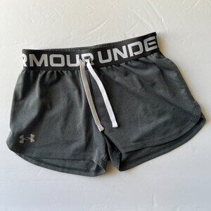 Under Armour Girls S Running Shorts Gray White HeatGear Loose Fit Drawstring
