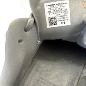 Under Armour Glyde 2.0 softball cleat in "Baseball Gray/Metallic Silver" in a textile upper with a "PU" coating (faux leather) providing a balance of comfort, breathability and durability, with an enhanced plush padding around the ankle. Academy Sports describes these as "Designed for speed, the shoes feature textile uppers for a lightweight feel and Charged Cushioning® midsoles for an explosive energy return. Plush ankle pockets and PerfX Pro sockliners add support while UA Microtips cleats maximize ground contact for uncompromising grip. PU-reinforced textile uppers provide durability and ventilation; Plush ankle pocket enhances support; PerfX Pro molded sockliners conform to your feet for custom comfort; Charged Cushioning® midsoles absorb impact and return energy for an explosive speed boost; UA Microtips metal cleats deliver enhanced traction in a lightweight package; Spikes are strategically placed to maximize ground contact and reduce pressure." Never been worn. No box