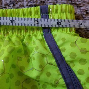 Under Armour, size medium shorts. Super cute neon green/yellow shorts. Grey stripes with white mesh on the side. Also features gold detailed hexagons. Excellent condition! No flaws. Like new! Length approximately 10.5 - 11". Waist approximately 13.5 - 14".