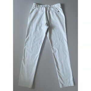 Pants are a gray pant that is a lightweight, breathable, stretch material. Pants are a four pocket pant and have an embroidered branding tag logo on rear.