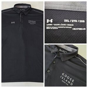 Under Armour Golf Polo Mens 2XL XXL Goose Island Beer Logo Loose Fit Black Gray