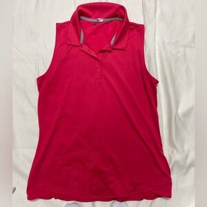 Bright pink tank top by Under Armour. Ideal for active wear. Smooth and flexible design.
