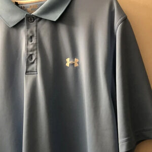 Used in great condition! No flaws or issues. The color looks more of a regular blue in pictures but its definitely more of a baby blue/light blue. I think this was a golf shirt but could be used as a regular collared shirt as well. The last photo is with the lights off just flash to show more of what it looks like in person. If color is an issue please ask for more pictures! Feel free to send offers and questions (: