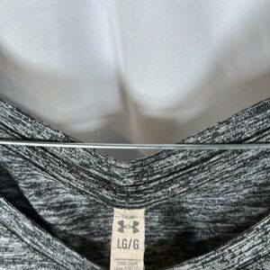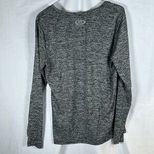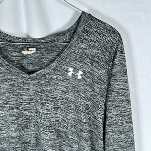 Stylish athletic top by Under Armour. Features a heathered gray design. Perfect for workouts or casual wear.