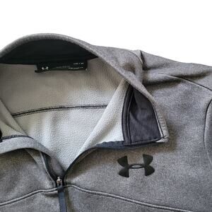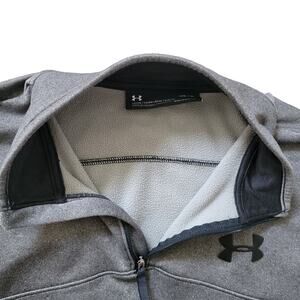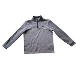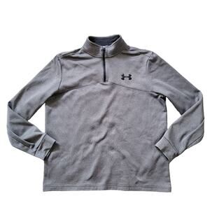 Comfortable gray quarter-zip sweatshirt. Features Under Armour logo. Ideal for casual wear.