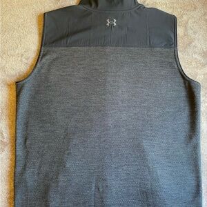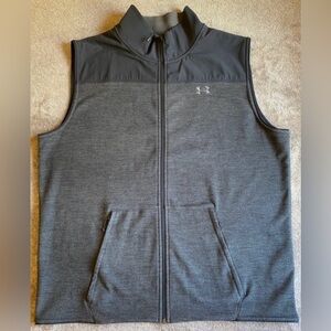 Stylish gray sleeveless vest by Under Armour. Features a full zip and front pockets.