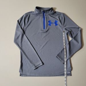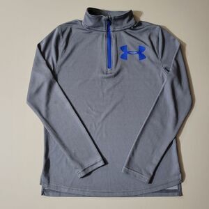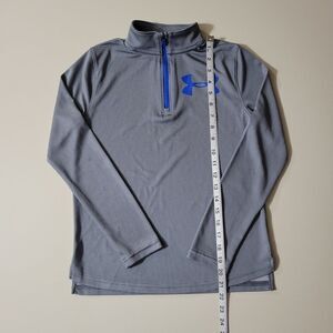 This two-tone UA Tech™ boys quarter-zip pullover is quick-drying and is incredibly soft. Fuller cut for complete comfort, it's ideal for sports warm-ups or casual wear. Fabric/care tag is missing, and info was obtained from website. Excellent condition.
