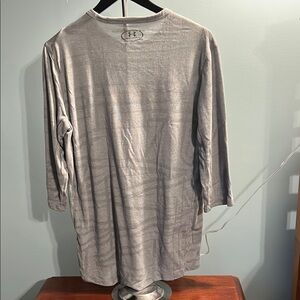Discover the perfect blend of comfort and style with this Under Armour gray half sleeve top. Made from soft, breathable fabric, it features a relaxed fit ideal for everyday wear. Its minimalist design and heathered texture add a touch of sophistication to your casual wardrobe. This shirt is a bit sheer. I have included pictures.