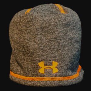 Under Armour Beanie. Gray with Orange Stitching and Accents. Storm 1. Style # 1262196. Youth One Size Fits Most. Great Used Condition.