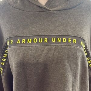 Stylish green hoodie with neon green accents from Under Armour. Features a comfortable fit and a modern design. Size XL. 19” long.
