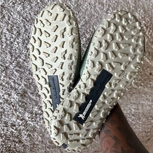 Olive green and black slides with textured strap. Features Under Armour logo. Ideal for casual wear.