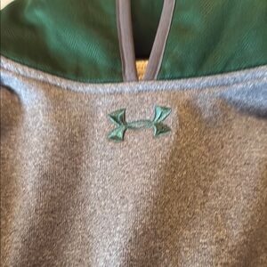 Stylish Under Armour hoodie. Features green sleeves and gray body. Comfortable and versatile.
