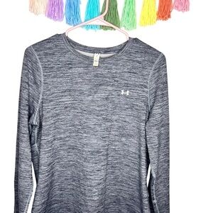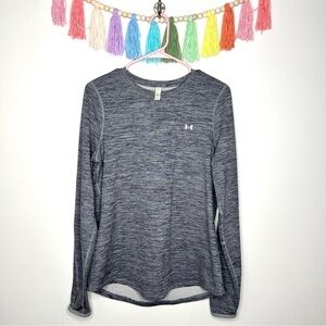 Under Armour Grey Gray Marled Long Sleeve Cold Gear Athletic Sporty Top Large