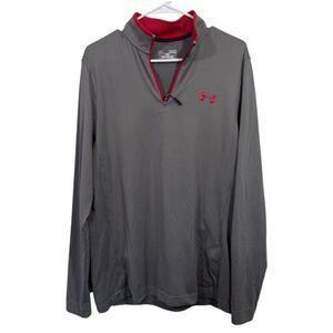 Gently worn men's size medium under armour grey half zip activewear long sleeve top. Moisture wicking, breathable. Please review all photos for any signs of wear-pictured as is. Disclaimer: Any items with any wear/staining has not been treated, and unsure of ability to remove/treat condition. Comes from a smoke free home, bundle with other items to save & minimize shipping cost.