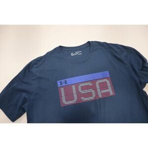 Under Armour Gym Shirt USA American Flag HeatGear Loose Short Sleeve Mens 2XL