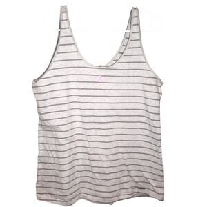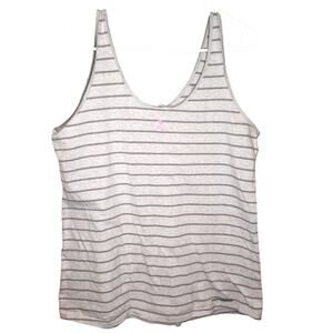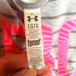 Great to work out in. Small stain found on right side at top, possibly a color run on stripe. See last pic for discoloration / Stain.