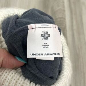 Under Armour Hat Girls Youth OS White and Purple Marled Knit Beanie with Puff