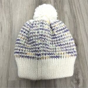 Excellent used Condition Little Girls Under Armour White and Purple Marled Knit Winter Beanie Hat with Puff
