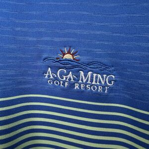 Under Armour Heat Gear A-Ga-Ming Golf Polo Shirt Mens Medium Blue Green Striped