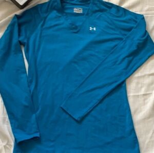Under Armour Heat Gear Blue Long Sleeve V-Neck Top size Small