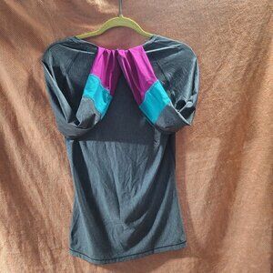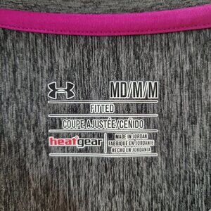 Under Armour Heat Gear Fitted Long Sleeve Tee Color Block Pink Blue Gray Medium