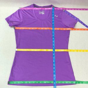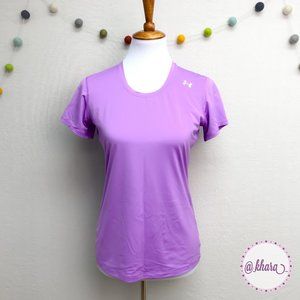 Fitted purple UA heat gear top. Great for training, layering, or just warm summer days! Lightweight with plenty of stretch. Not sure I ever wore this. Like new condition except tags removed.