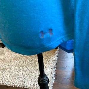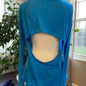 Under Armour Heat Gear Long Sleeve Cut Out Back Size Large. Perfect condition! Flattering High/Low Style. Long Sleeve. Medium Blue in color. Armpit to armpit measurement is 20” . Length in front 23” back 26”
