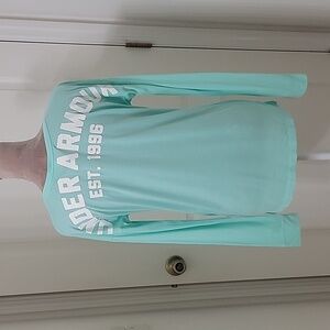 Under Armour Heat Gear Long Sleeve Shirt with Front and Back Logo, EUC. Size Shows XS, but shown on size 6 mannequin. Please refer to measurements in photos to ensure proper fit. Cute Minty Green in Color.