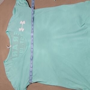 Under Armour Heat Gear Long Sleeve Shirt with Front and Back Logo, EUC. Size Shows XS, but shown on size 6 mannequin. Please refer to measurements in photos to ensure proper fit. Cute Minty Green in Color.