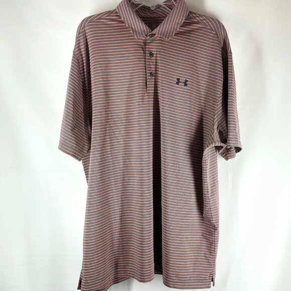 Under Armour Heat Gear Loose Gray And Orange Polo Shirt Size 2XL