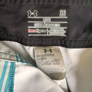 Experience the ultimate comfort and style with these Under Armour Heat Gear Loose Storm Board Shorts. Perfect for any casual occasion, these blue striped shorts feature a zip closure and a regular fit for a comfortable and flattering look. The size 36 waist provides a great fit for men, and the pocket adds convenient storage for small items.