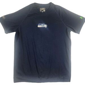 Crafted for the dedicated fan, this Under Armour Heat Gear T-shirt is an authentic piece of Seattle Seahawks apparel. The medium-sized jersey is designed to provide comfort during the warmer months, featuring innovative technology to regulate body temperature and wick away sweat.