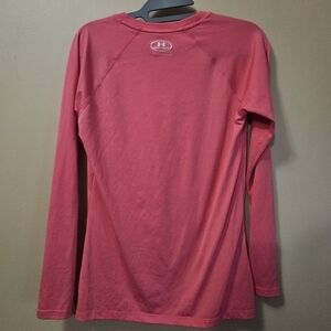 Under Armour Heat Gear Semi Fitted Women's Size S Longsleeve Shirt Pink V Neck