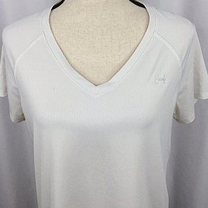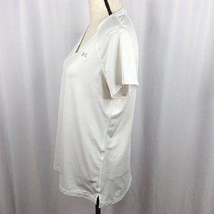 Under Armour Heat Gear T-Shirt Top Womens Large Fitted V-Neck Vented Breathable