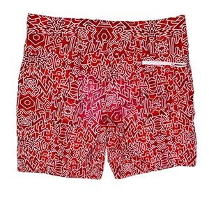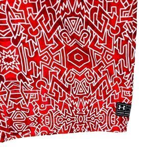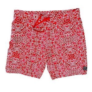 Under Armour Heat Gear White Red Geometric Print Board Shorts Swim Sz 36