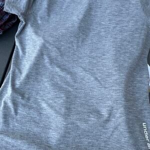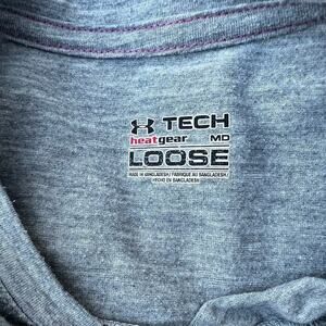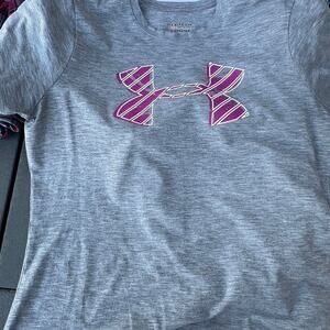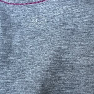 UNDER ARMOR Heat Gear women’s size M loose. Gray T-shirt with pink Under Armour logo on front.. short sleeve. Back right side has the words UNDER ARMOUR printed on it.