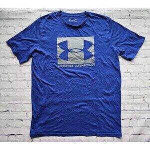 Under Armour HeatGear Blue Graphic Logo T-Shirt XL Loose Fit Short Sleeve Tee