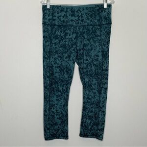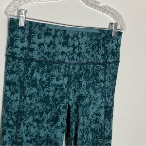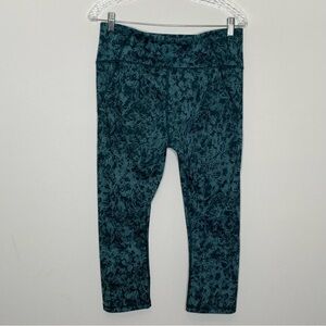 Under Armour HeatGear green abstract floral print leggings. Hidden center back pocket, crop length. I believe these are a size large but I removed the tags when purchased, please see measurements for accurate size and fit. Only worn a few times when I was postpartum between sizes.