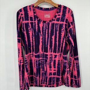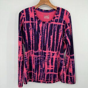 Under Armour HeatGear Long Sleeve Shirt Fitted Pink Purple Tie-Dye Size Large