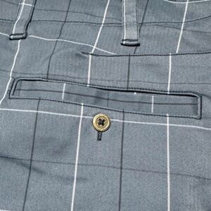Stay cool and sharp in these Under Armour HeatGear hybrid shorts for men. Featuring a classic gray plaid print with a lightweight, breathable feel—perfect for golf, casual wear, or summer activities. These shorts are in great pre-owned condition with no flaws. The fabric is moisture-wicking and comfortable, with a bit of stretch for movement.